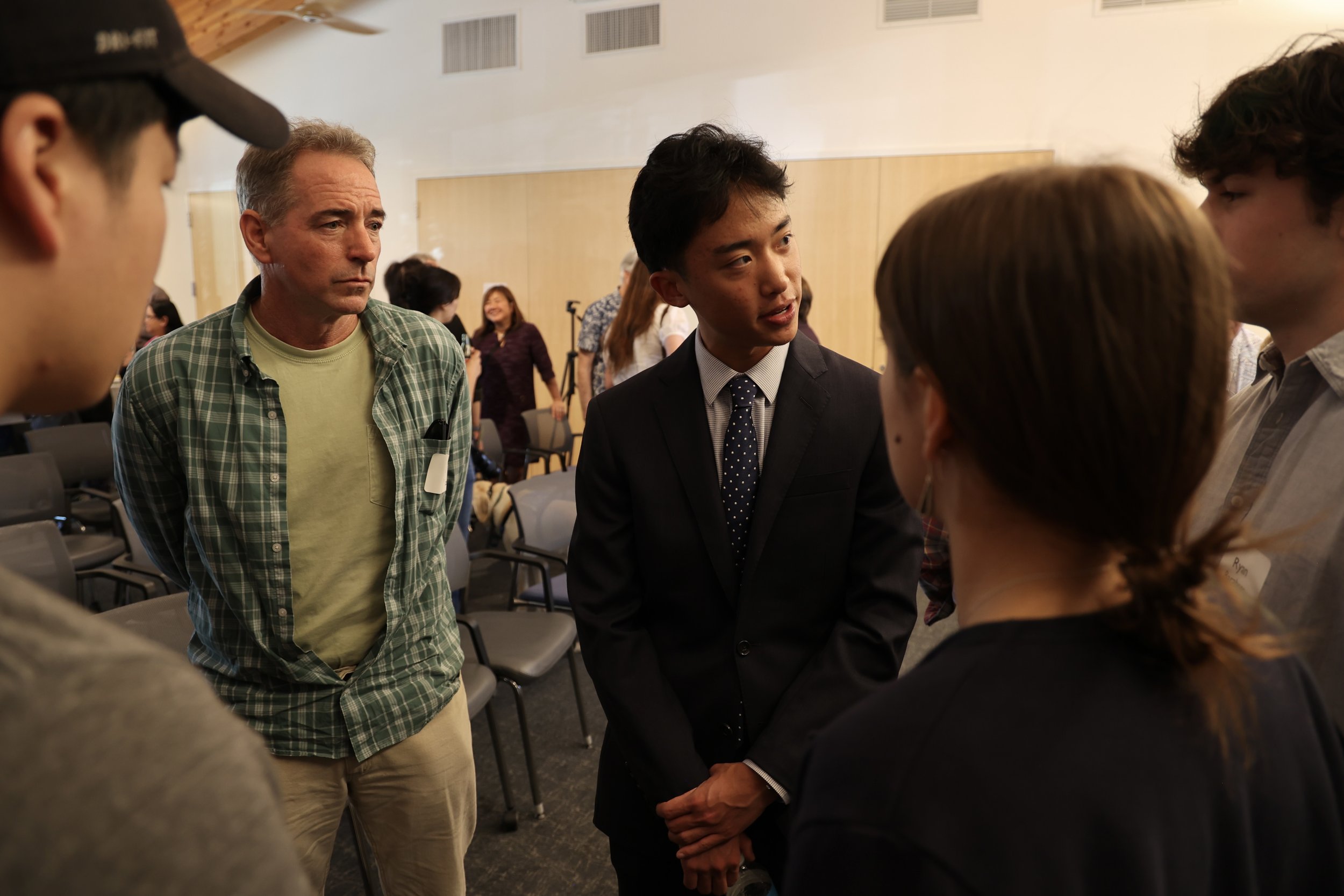 Tomo Chien discusses his college newsletter project, College Brief, with prospective funders in March 2024. (Photo by Dan Rubinstein)
